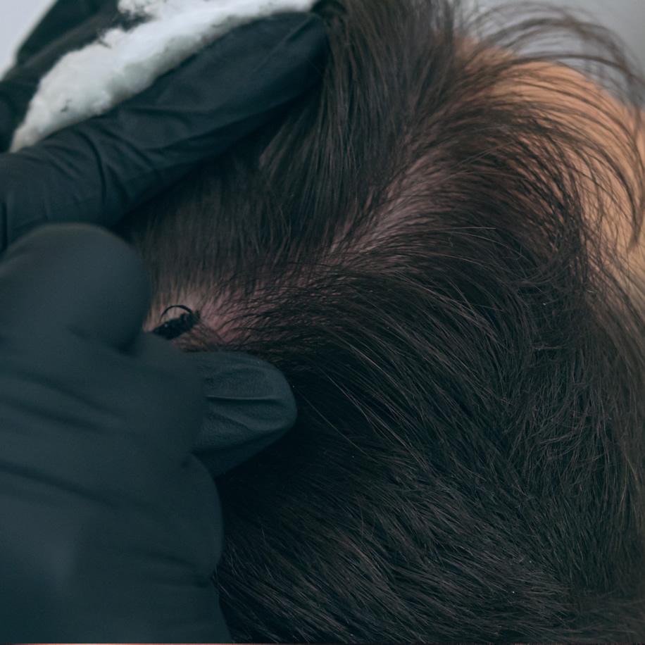 Micro-pigmenation involves using a fine needle or blade to take tiny dots of a pigment and implant it into the skin, creating the illusion of full hair.